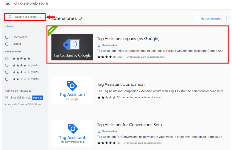 Cuando ya tenemos el código de GTM instalado en nuestra web el último paso sería comprobar que esta vinculación se ha realizado correctamente. Para ello nos vamos a apoyar en una extensión de Chrome llamada Tag Assistant de Google.
