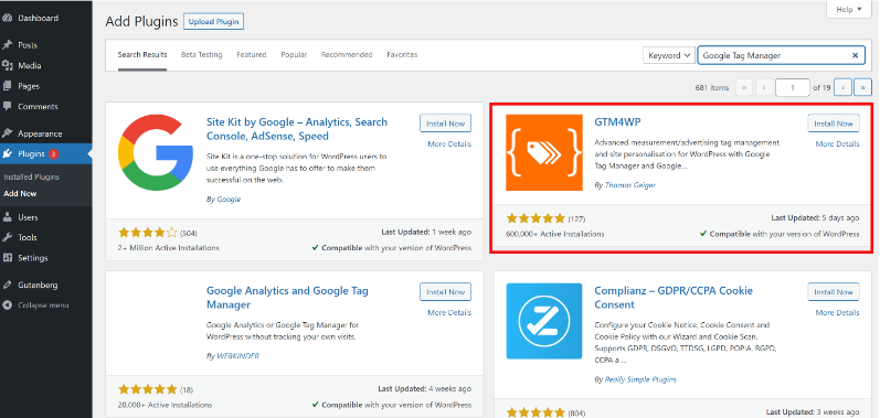 Instalar Google Tag Manager en WordPress mediante un plugin